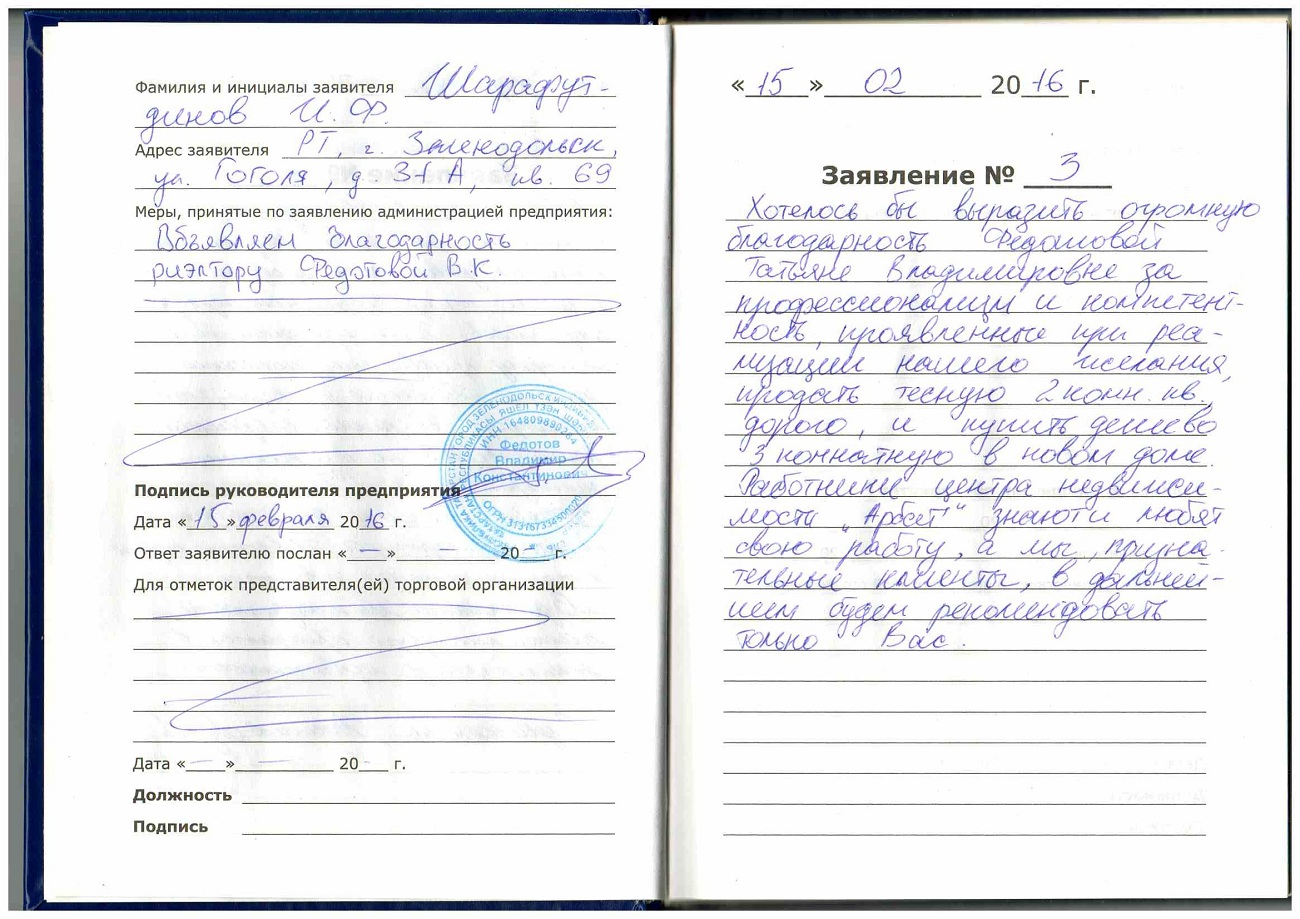 Отзывы о нашем агентстве недвижимости и его работниках пишут наши клиенты, оставляя свои контактные данные, что может проверить любой желающий. Это отличает нас от многих наших аппонентов и дает Вам, дорогой клиент, реальную информацию. Итак, на написание первого отзыва сподвигли нас наши же любимые клиенты, за что им большое спасибо !